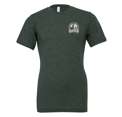 We are so excited for our new Russian River 110 West Coast Pils, and the money we are donating for Russian Riverkeeper, that we just had to make a shirt for the occasion! This heathered forest green 100% cotton Bella+Canvas shirt proudly displays our Russian River logo on the front, and a re-stylized Russian River 110 logo on the back.